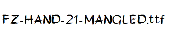 FZ-HAND-21-MANGLED.ttf is a very beautiful fonts,FZ-HAND-21-MANGLED.ttf download link,download fonts FZ-HAND-21-MANGLED.ttf.FZ-HAND-21-MANGLED.ttf is a very beautiful art font, FZ-HAND-21-MANGLED.ttf is widely used in various books and periodicals, album design printing, FZ-HAND-21-MANGLED.ttf has a strong visual impact, FZ-HAND-21-MANGLED.ttf newspapers and magazines and books commonly used fonts, posters, personality to promote brand logo design, Font design, etc., environment, font FZ-HAND-21-MANGLED.ttf download location, FZ-HAND-21-MANGLED.ttf where to download .FZ-HAND-21-MANGLED.ttf font installation.