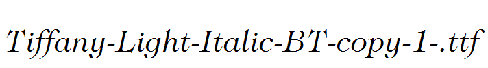 Tiffany-Light-Italic-BT-copy-1-.ttf is a very beautiful fonts,Tiffany-Light-Italic-BT-copy-1-.ttf download link,download fonts Tiffany-Light-Italic-BT-copy-1-.ttf.Tiffany-Light-Italic-BT-copy-1-.ttf is a very beautiful art font, Tiffany-Light-Italic-BT-copy-1-.ttf is widely used in various books and periodicals, album design printing, Tiffany-Light-Italic-BT-copy-1-.ttf has a strong visual impact, Tiffany-Light-Italic-BT-copy-1-.ttf newspapers and magazines and books commonly used fonts, posters, personality to promote brand logo design, Font design, etc., environment, font Tiffany-Light-Italic-BT-copy-1-.ttf download location, Tiffany-Light-Italic-BT-copy-1-.ttf where to download .Tiffany-Light-Italic-BT-copy-1-.ttf font installation.